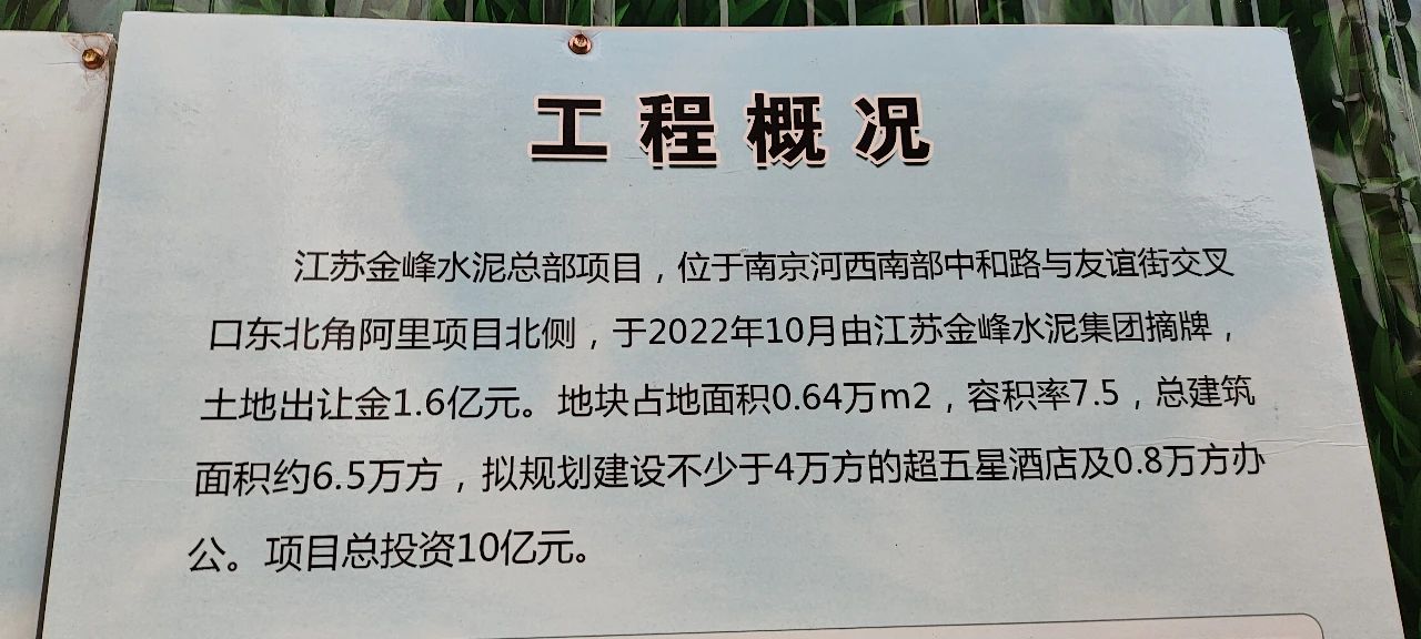 2022年9月,江蘇金峰水泥集團(tuán)有限公司拿下河西南18-17號地塊,成交總價1.6億元。