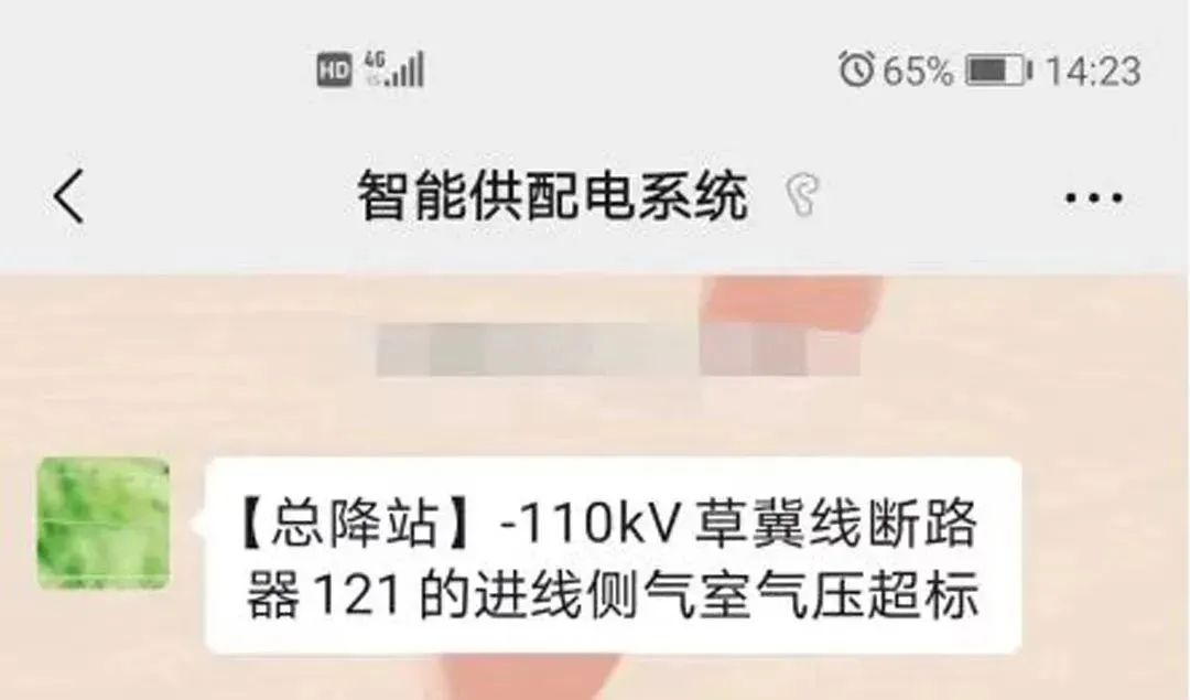 2024年1月5日,該企業智能供配電管理系統發出“【總降站】-110kV草冀線路斷路器121的進線側氣室氣壓超標”告警。