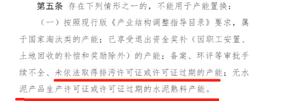 現行置換辦法第二章第五條規定:2013年以來連續停產兩年及以上的水泥熟料、平板玻璃產能(因省級主管部門制定或同意的錯峰生產方案以及因地方規劃調整導致此情況的除外),或2024年以來連續兩年每年運轉天數不足90天的水泥熟料產能。不能用于產能置換。