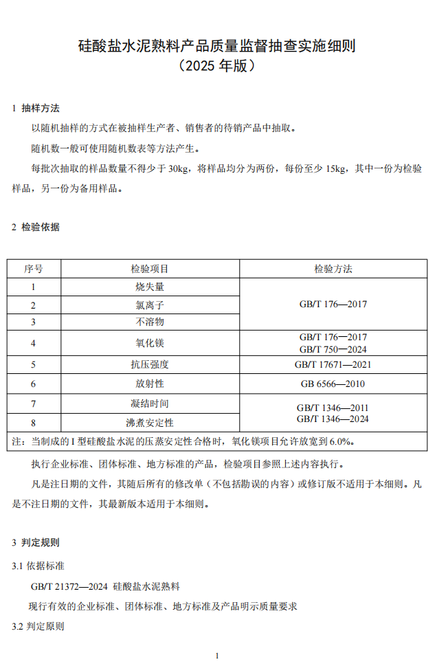 近日,市場監管總局全面開展2025年產品質量國家監督抽查工作,將對164種產品開展國家監督抽查,在生產、流通、平臺廣泛抽取樣品,共計1.6萬余批次。市場監管總局將全面、準確、及時發布抽查結果,曝光典型違法案例,科學引領消費,切實發揮產品質量國家監督抽查的利劍作用,維護人民群眾人身健康與財產安全。 水泥人網注意到,市場監管總局同期發布的還有水泥及熟料產品2025版產品質量監督抽查實施細則公告,并表示自發布之日起實施,各地市場監管部門在開展產品質量監督抽查時可直接采用。此前發布的同種產品監督抽查實施細則同時廢止。